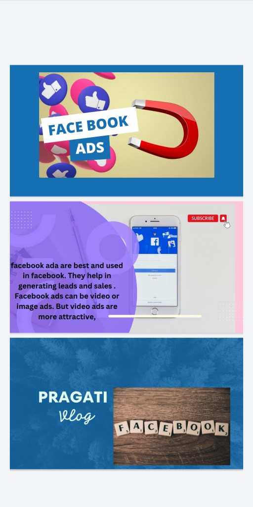Facebook ads are used fir generating leads and sales. They are best in awareness and targetting audience . They can be in the form of video and image.